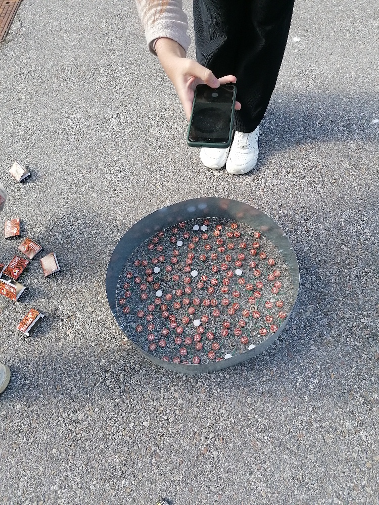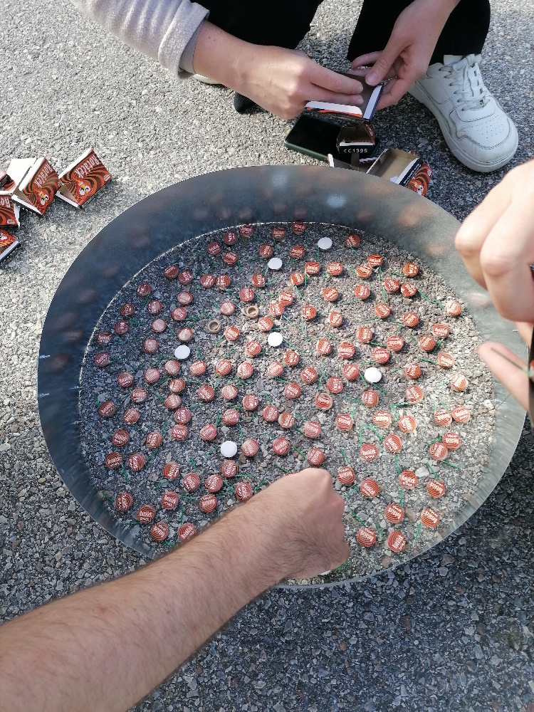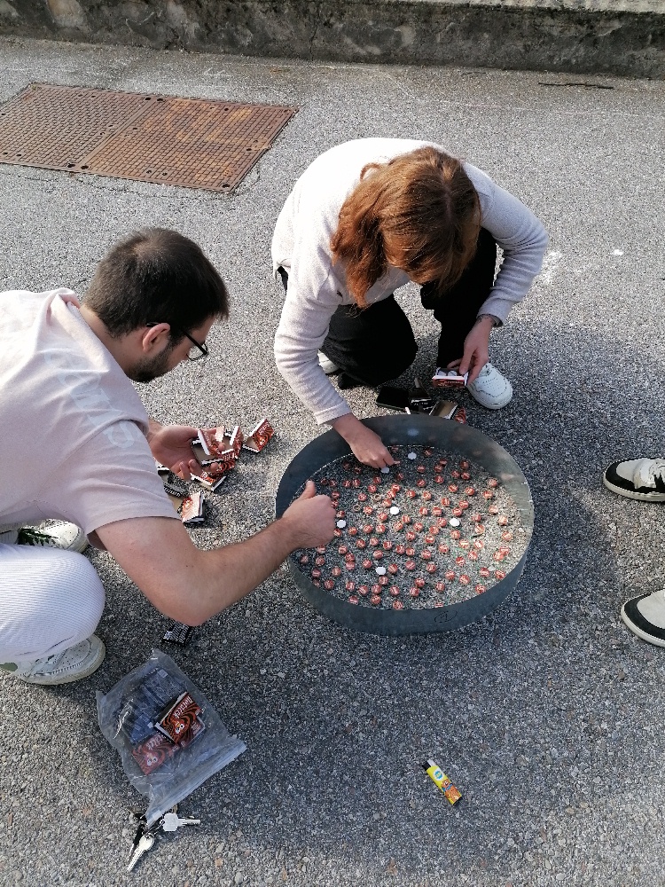 Hier noch bei den Vorbereitungen. Ich hatte keine Ahnung, ob ich den Kreis passend gewählt habe, ob ich genügend Feuerwerkskörper gekauft habe und ob wir überhaupt eine Kettenreaktion in Gang setzen können.