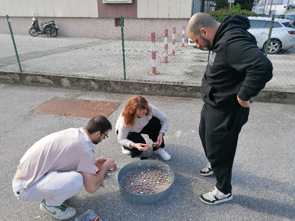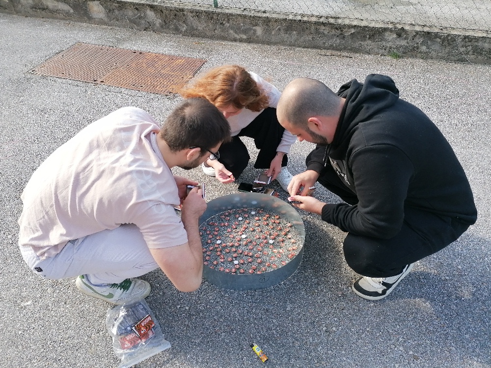 Die einzige anwesende Dame (A. P.) zeigte von uns allen den größten Mut und filmte das Experiment aus nächster Nähe. Vielen lieben Dank an die Drei für die tolle Unterstützung 🙂