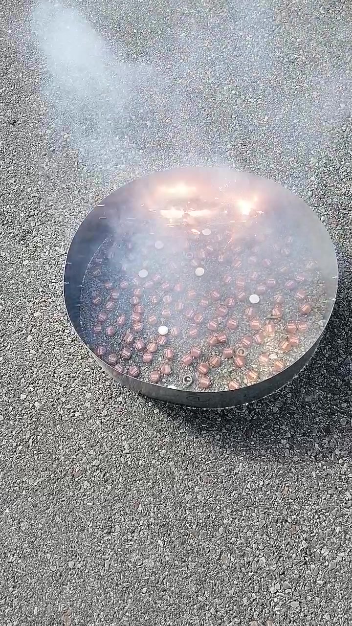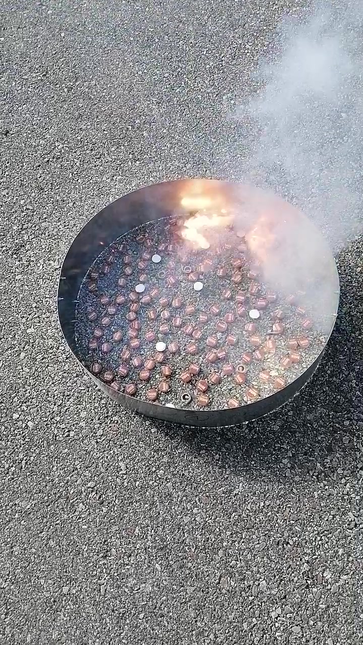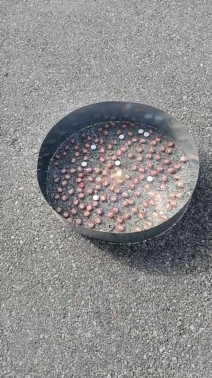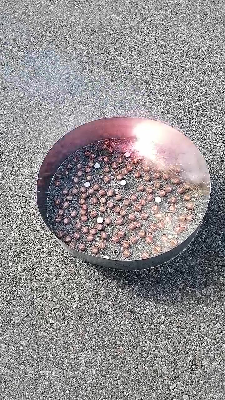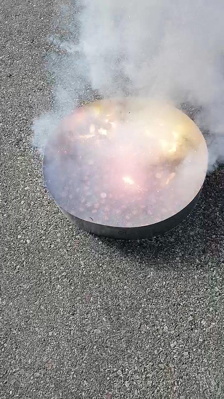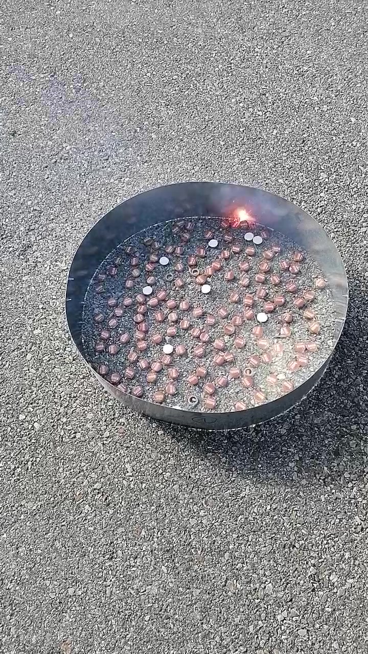 Den Versuch führe ich draußen vor meiner Wohnung auf glatten Beton durch. Damit mir die Feuerwerkskörper nicht abhauen, baue ich mir aus dünnen Blech eine Begrenzung:
