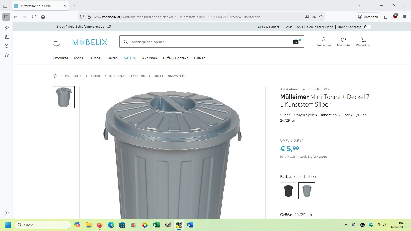 Bei der Recherche im Internet bin ich auf dieses 7 Liter Modell gestoßen, welches mir geeignet erschien: