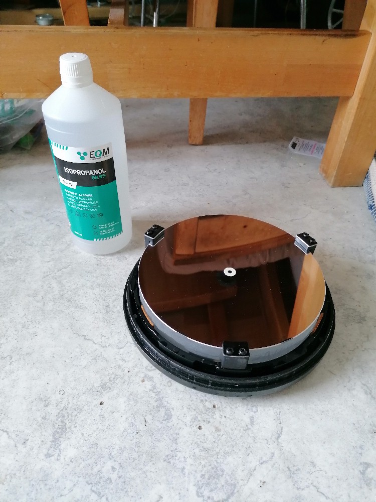 Für den Bau der Rockerbox habe ich mir extra eine gebrauchte Stichsäge auf http://www.willhaben.at gekauft. Das Holz werde ich im Baumarkt besorgen. Im Zuge des Baus habe ich den Newton gesäubert und musste feststellen, dass der Spiegel total trüb ist. Also gleich mit Isopropanol gereinigt: