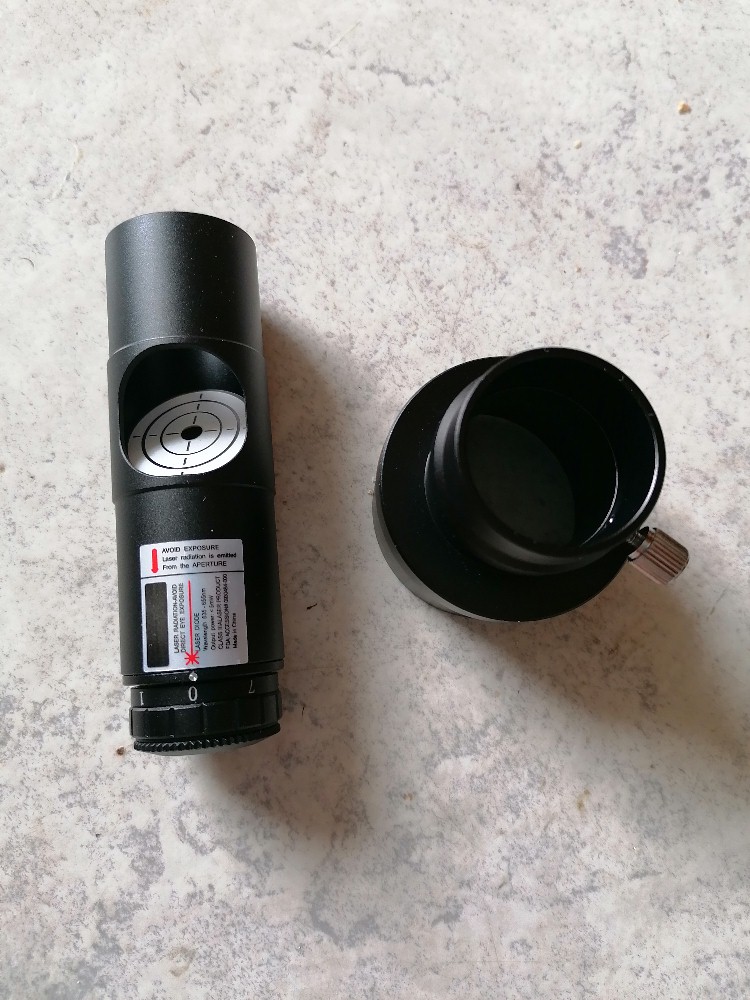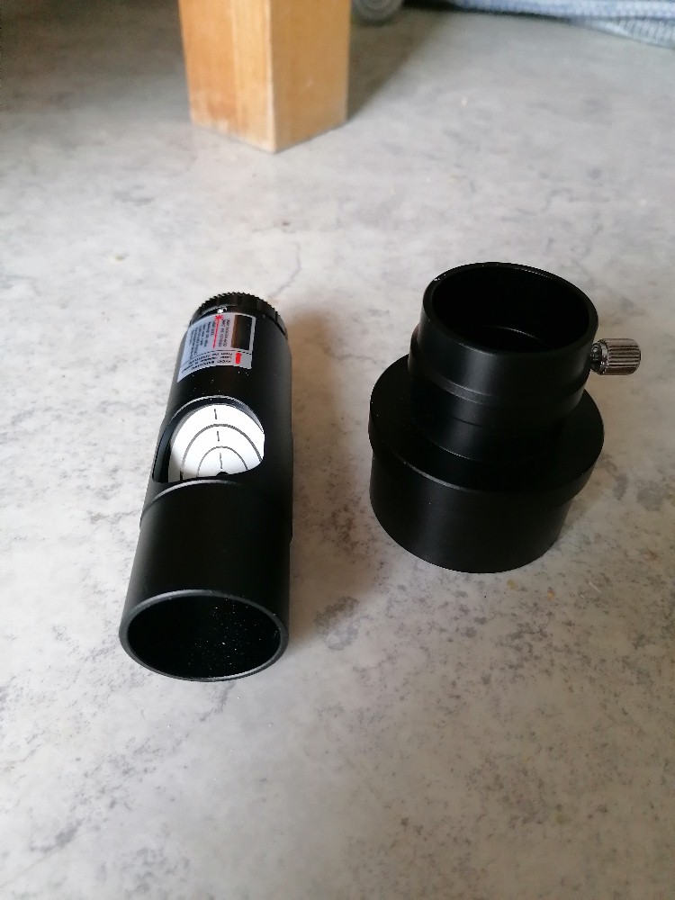 Da der Newton nach so langer Zeit dejustiert war und der alte Laserjustierer defekt ist, habe ich mir ein günstiges Modell neu gekauft. Es war sogar ein Adapter von 1.25″ auf 2″ mit dabei: