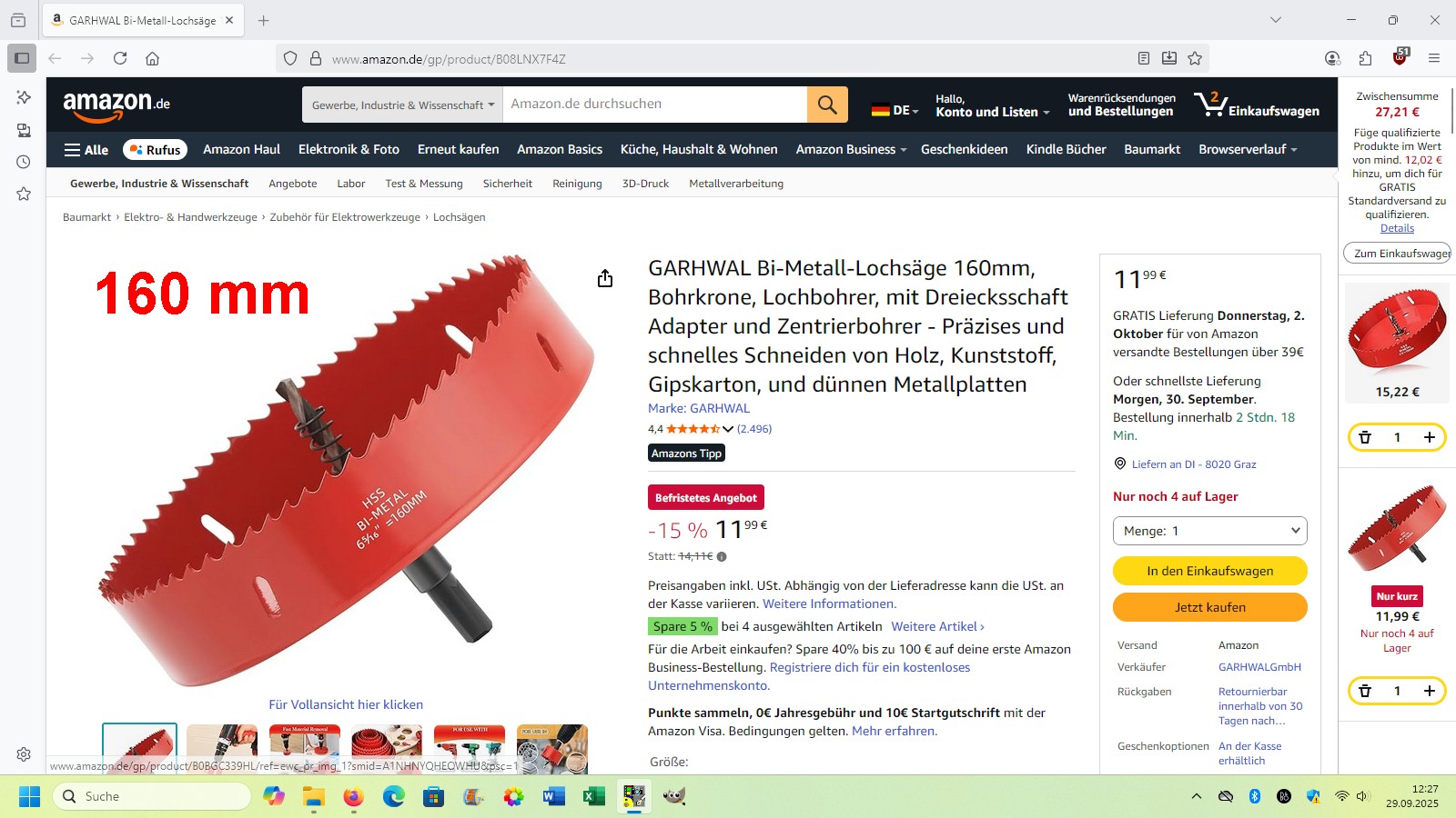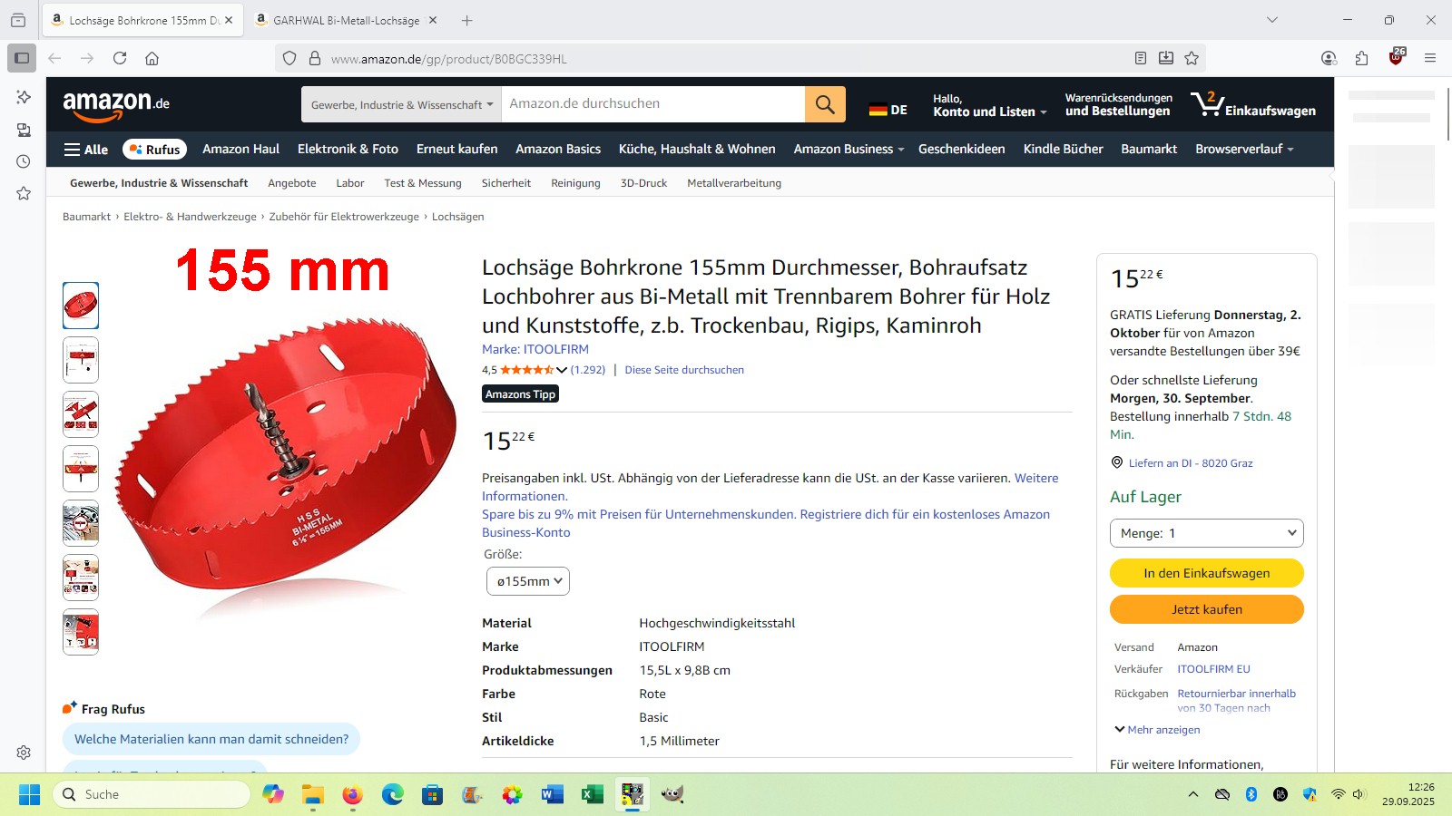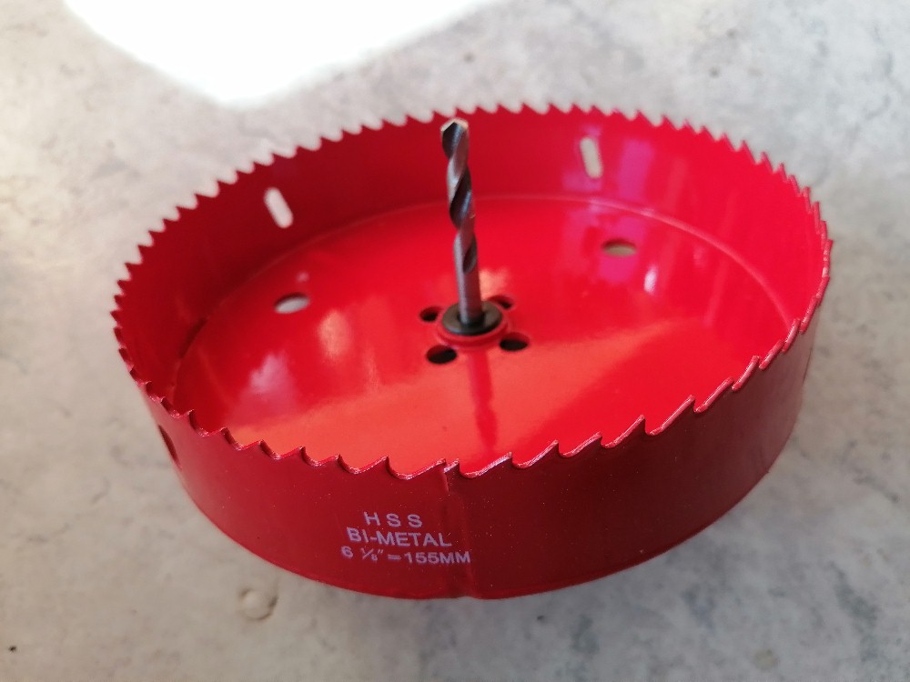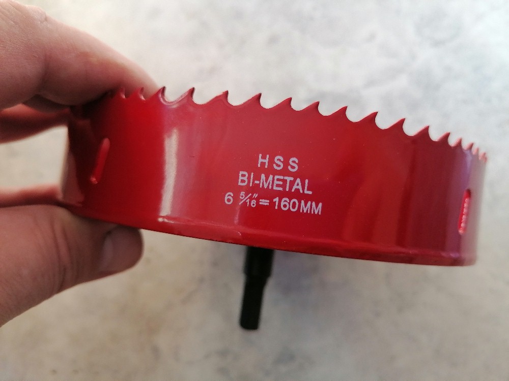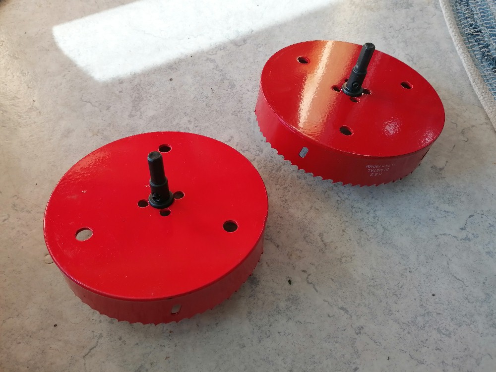 Für die Höhenverstellung des Dobson benötige ich ja Zylinder bzw. Zylinderaussparungen. Zu diesem Zweck habe ich mir auf Amazon 2 Lochsägen mit 155 mm und 160 mm Durchmesser bestellt: