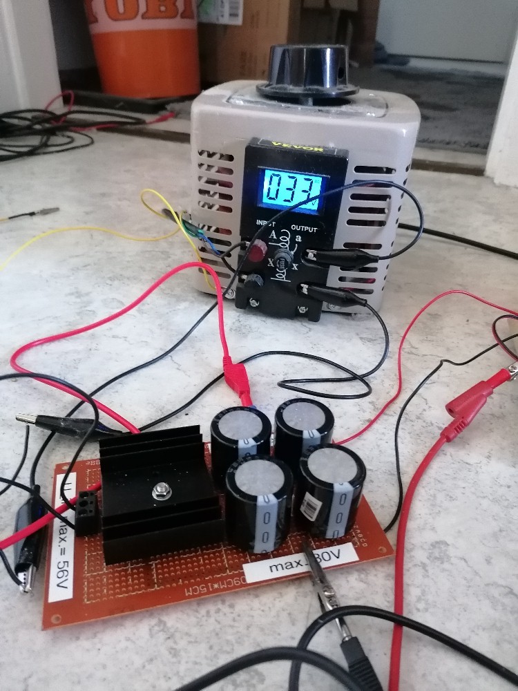 Der Variac + Gleichrichter + Glättung für die 50V: