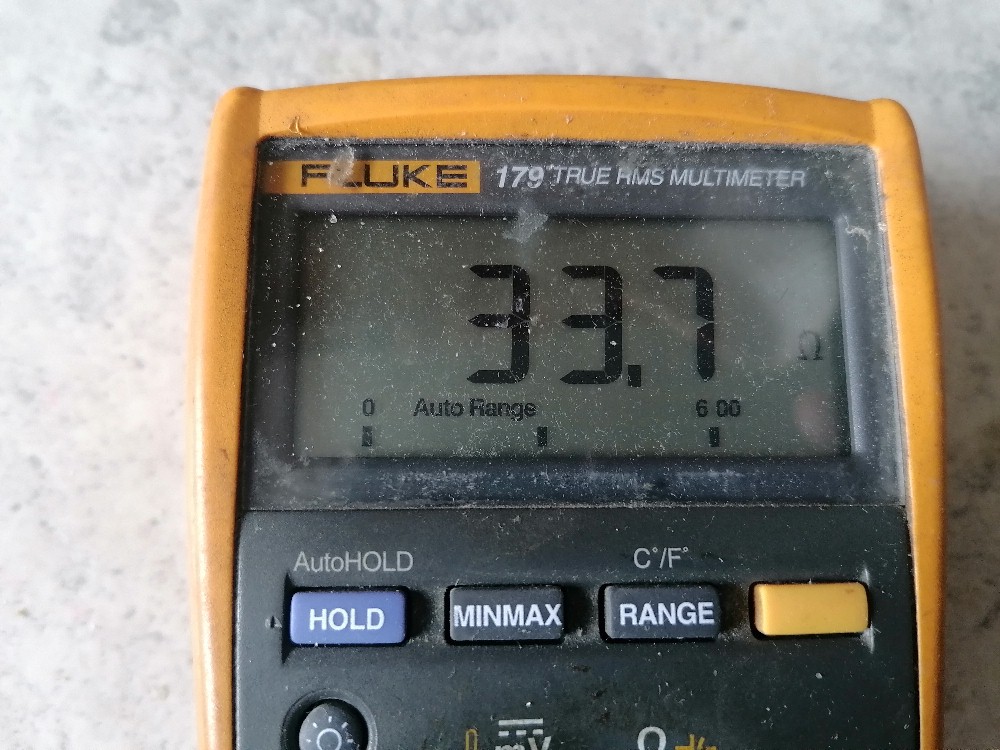 Dieses Mal entschied ich mich für einen 0.15 mm Kupferlackdraht. Bei je 220 Windungen beträgt nun der zufriedenstellende Spulenwiderstand um die 34 Ohm: