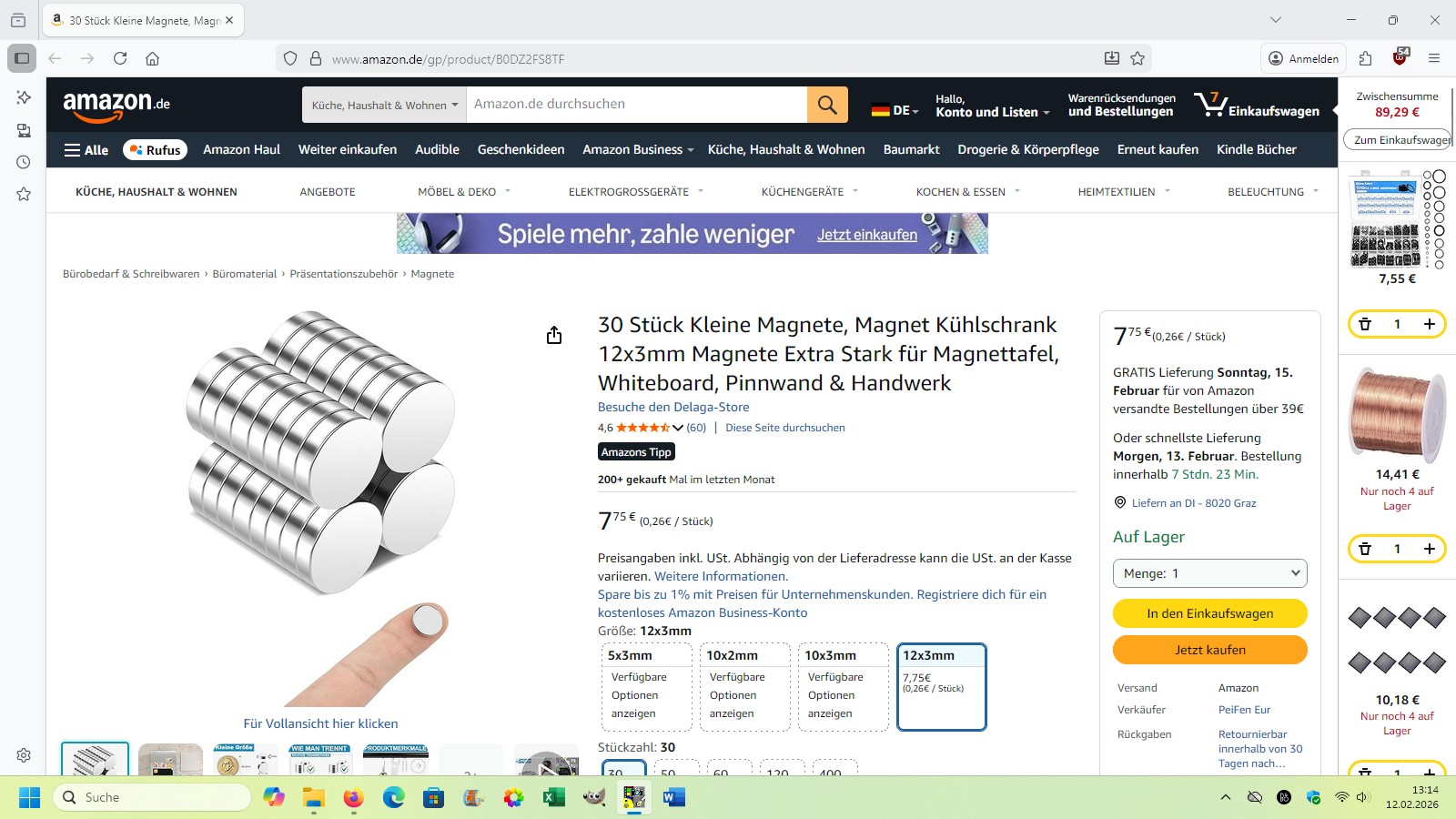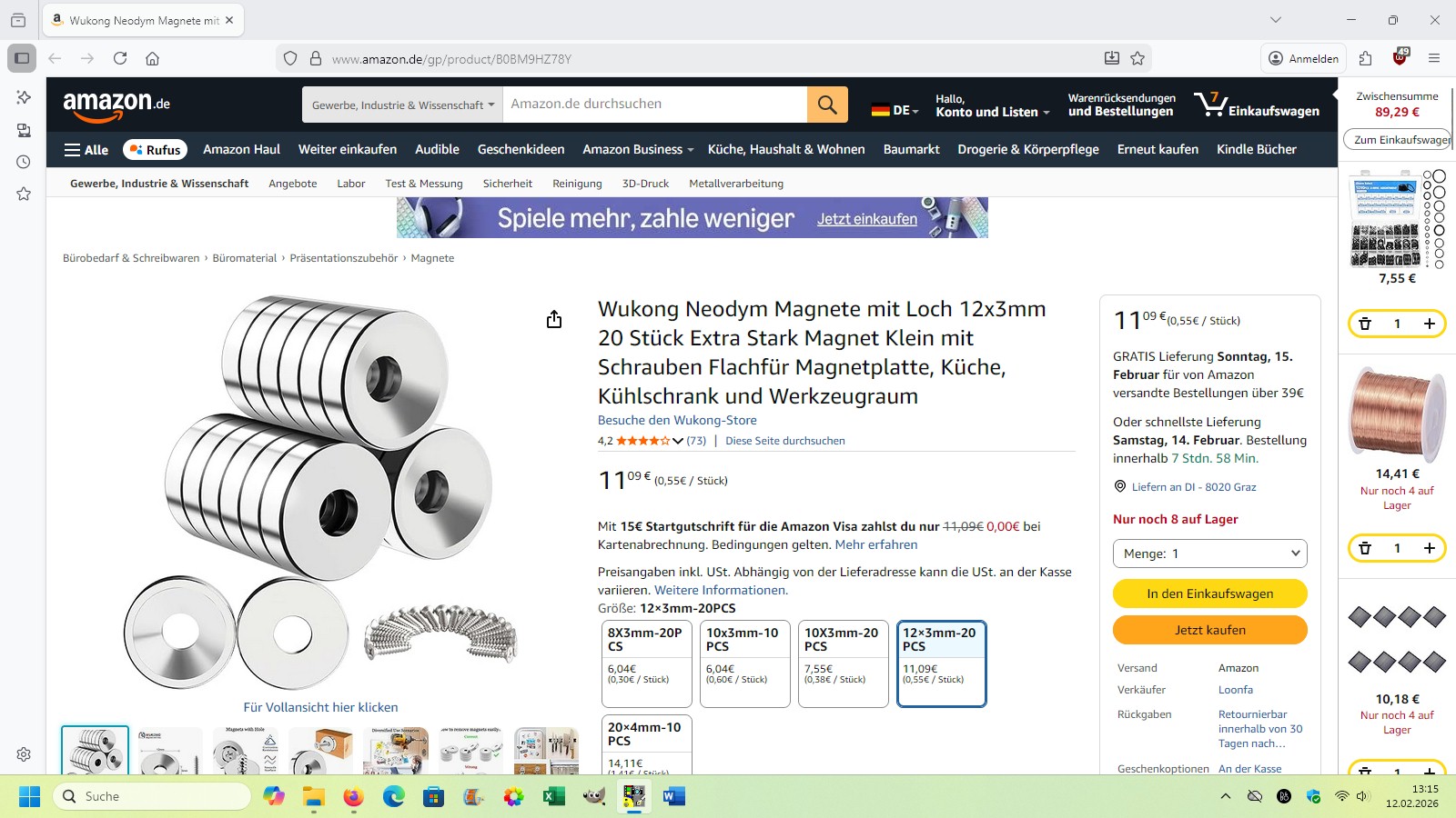 Und weil ich gerade am Bestellen war, musste auch folgendes O-Ring-Gummisortiment mit in den Warenkorb. Ich werde aber nur die 1 x 2 (1 mm Innendurchmesser, 2 mm Gummidicke) kleinen O-Ringe für die Fixierung der Ringmagnete benötigen.