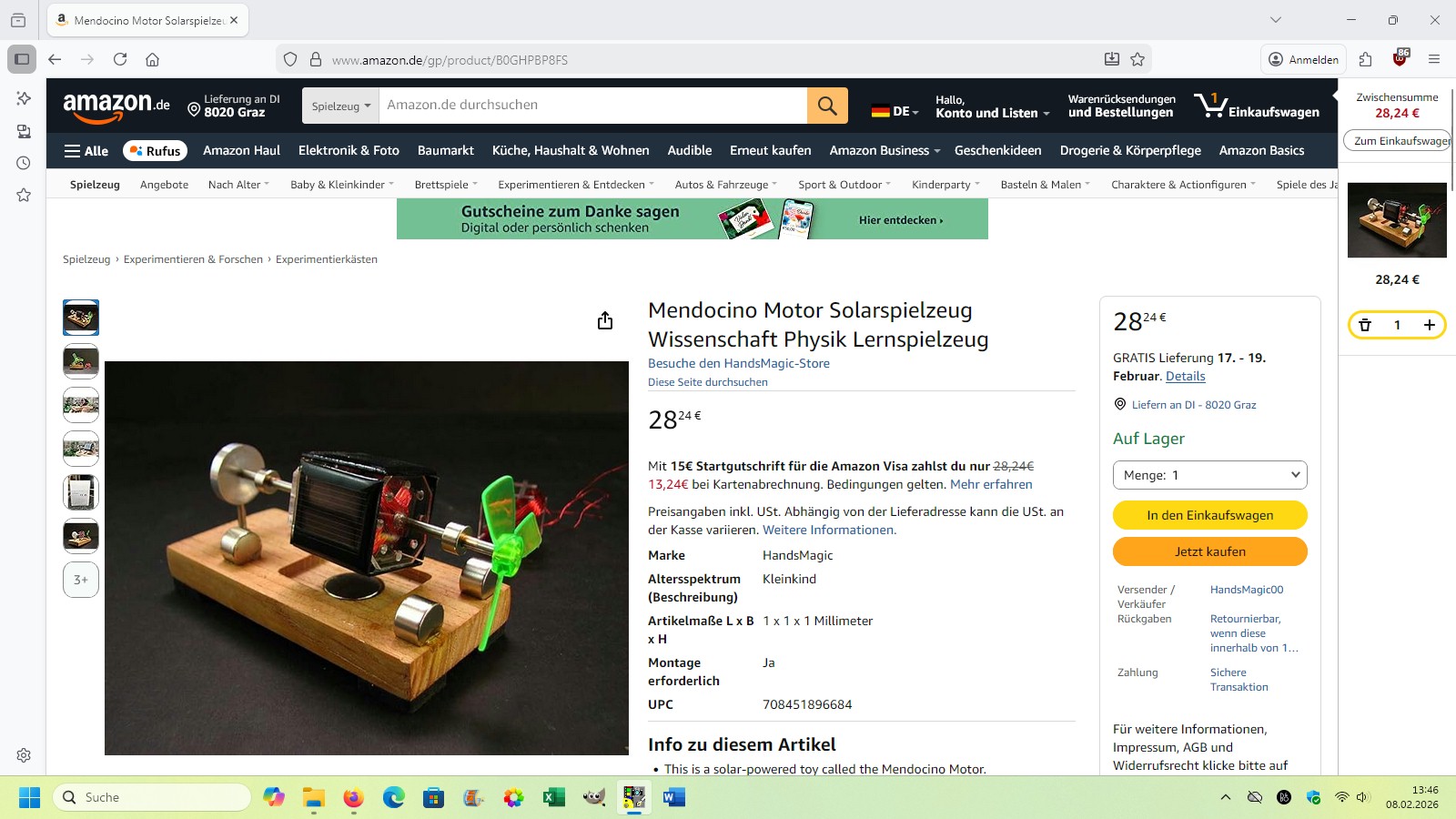Ich kann diesen Bausatz nur wärmstens für das Schullabor oder der Werkunterricht empfehlen. Für nicht einmal 5 Euro schafft er den Schülern ein richtiges Erfolgserlebnis, wenn sich der Motor zu drehen beginnt. Und auch ich habe mich gefreut, dass er funktioniert 😉