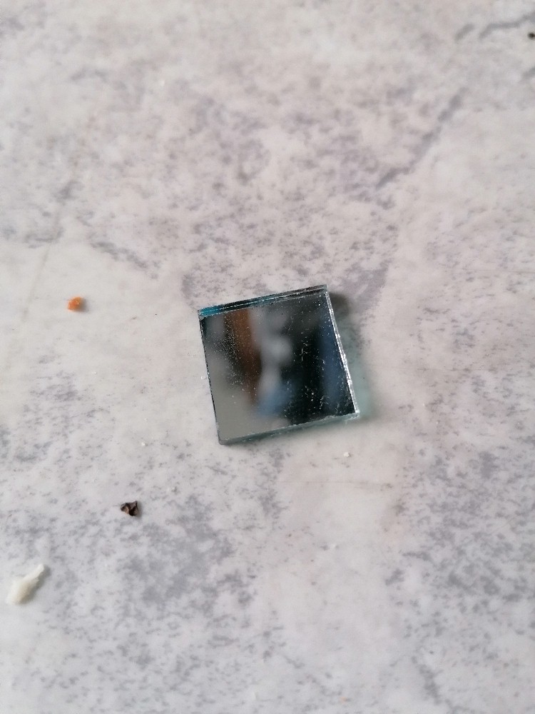 Damit die Reibung so gering wie möglich gehalten wird, stößt die Nähnadel gegen ein kleines Stück Glas. Zum Glück hatte ich Spiegelglasstücke zuhause: