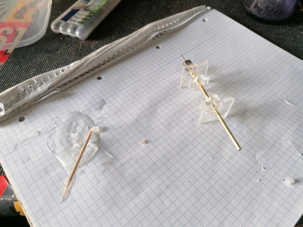 Inzwischen sind die Messingrohre angekommen und ich habe auch noch die Nähnadeln für die Lagerung besorgt: