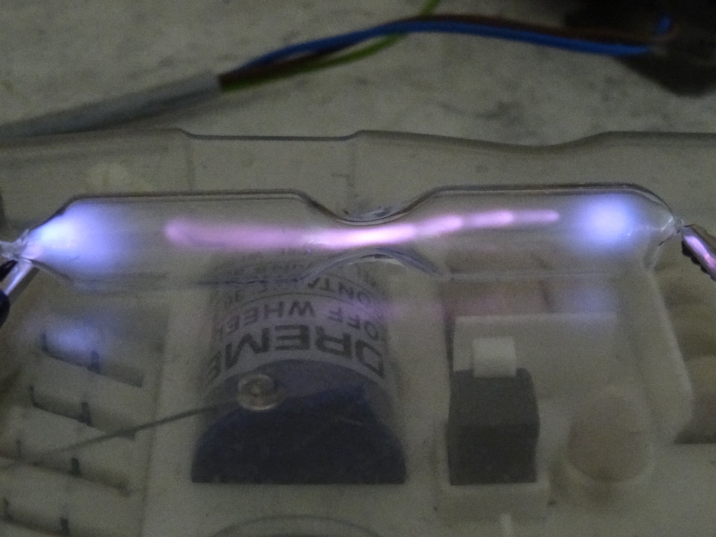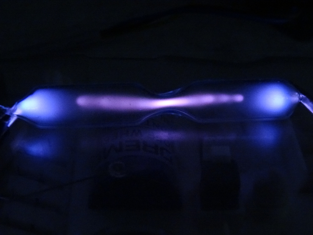 Es gibt kommerzielle Gasentladungsröhren, welche vorwiegend zur Spektroskopie benötigt werden. In meinem Fundus befindet sich zwei Wasserstoffröhren und eine Neonröhre. Obwohl, wenn ich den Helium-Neon-Laser mitzähle, sind es auch zwei Neonröhren 😉