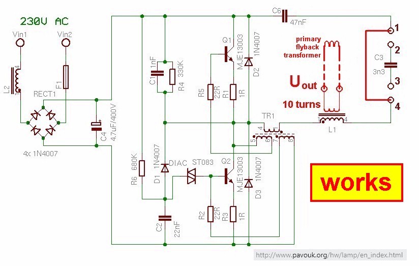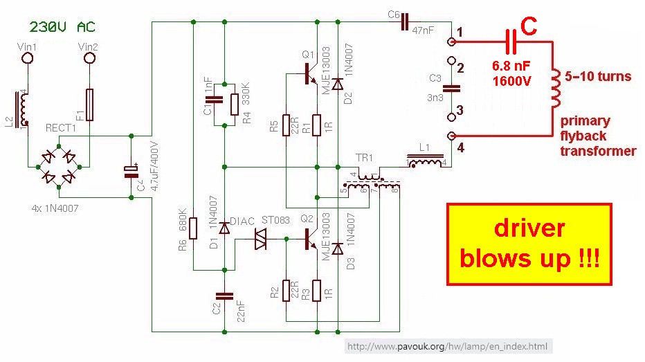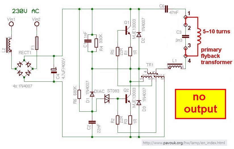 Der originale Schaltplan des CFL-Treibers: