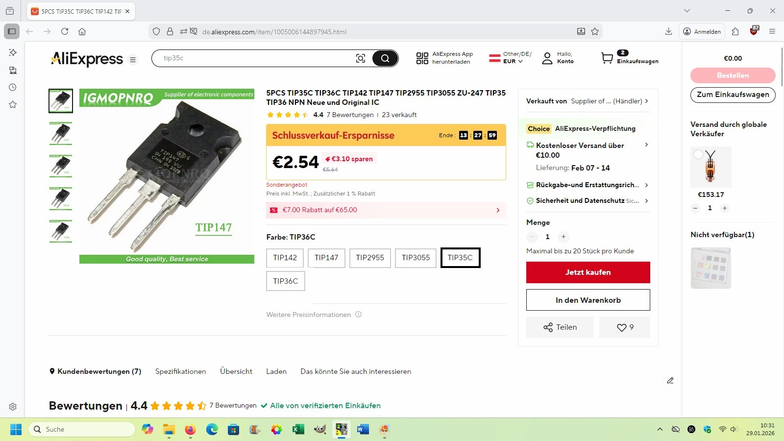 Eine bestellte TIP35-Packung enthielt leider fake-Transistoren. Zum Glück habe ich gleich in weiser Voraussicht bei zwei unterschiedlichen Verkäufern bestellt…