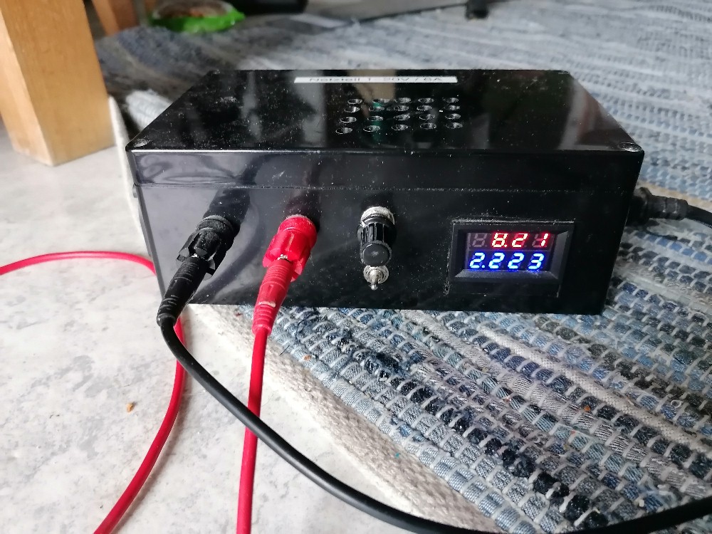 Ich habe mir nun mit dem obigen HV-Modul ein Netzteil gebaut. Den 5A step down converter speist nun mein altes Laptopnetzteil, welches 24V/2A liefert. Das passt ideal zum HV-Modul. Gekühlt wird dieses über einen 24V-Lüfter, den ich auch an den Ausgang des Buckconverters geschlossen habe und somit nur bei höheren Spannungen/Leistungen in Fahrt kommt.
