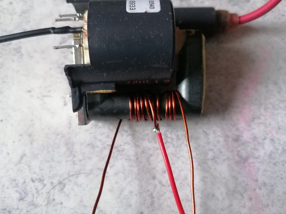 Hinweis: Auf den richtigen Anschluss der Feedback-Wicklung mit der Basis des Transistors achten!