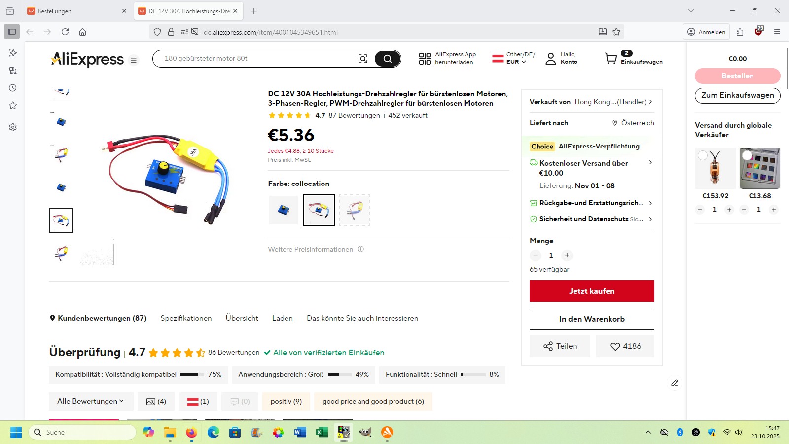 Falls dies scheitert, werde ich den Festplattenmotor über einen Brushless-ESC ansteuern. Dazu habe ich mir einen solchen auf Aliexpress samt Servotester zum Verstellen der Geschwindigkeit bestellt.