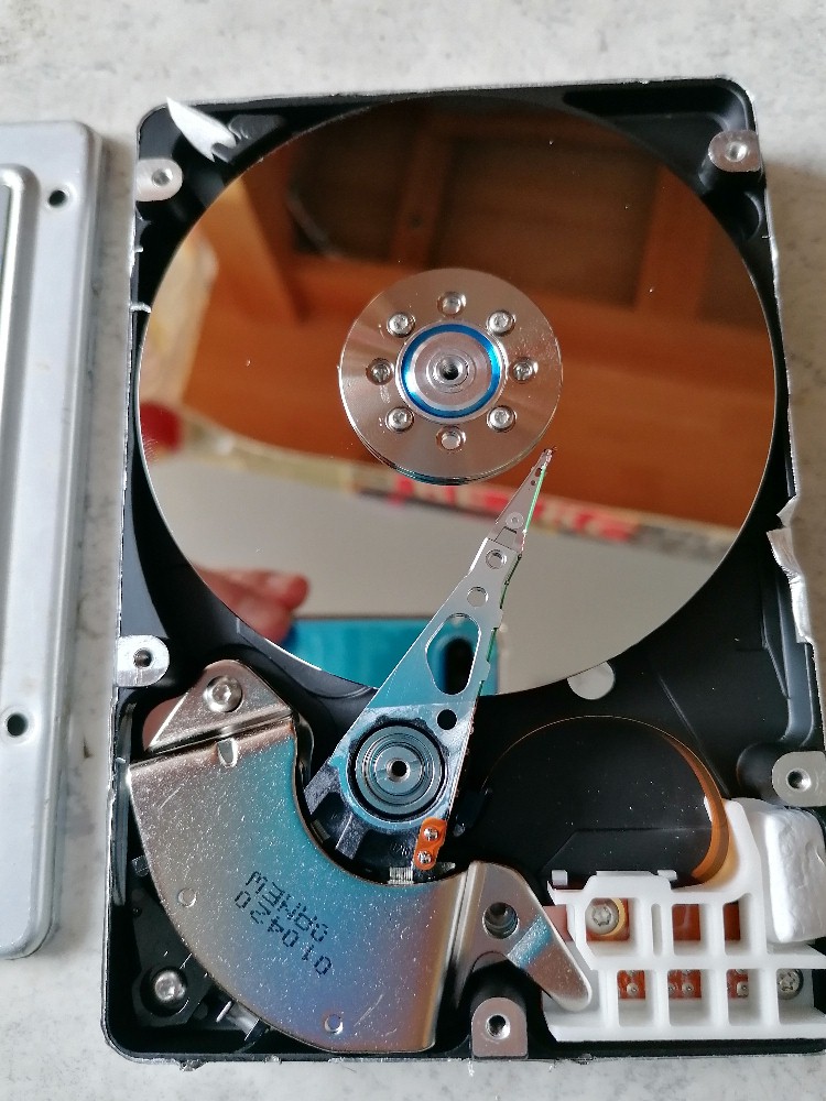 Hier erkennt man die beiden Speicherscheiben/Platter: