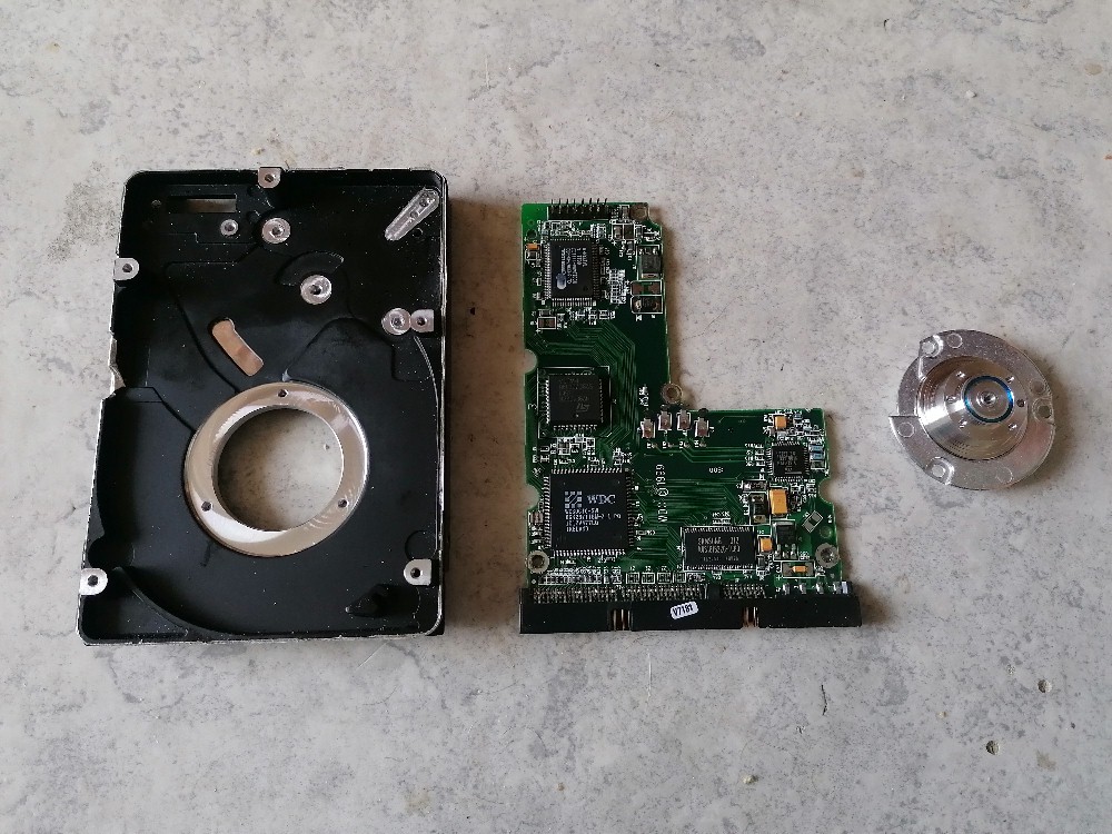 Als Kreisel missbrauchen wir eine alte Computer-Festplatte. Diese erhält man für kleines Geld gebraucht zum Beispiel auf http://www.willhaben.at. Am besten hält man Ausschau nach einer alten IDE Festplatte mit mindestens 2 Speicherscheiben. Welches Modell über 2 oder mehr Speicherscheiben verfügt, kann man z.B. durch ChatGPT erfahren. Zunächst muss man die Festplatte öffnen und von unnötigen Balast befreien.