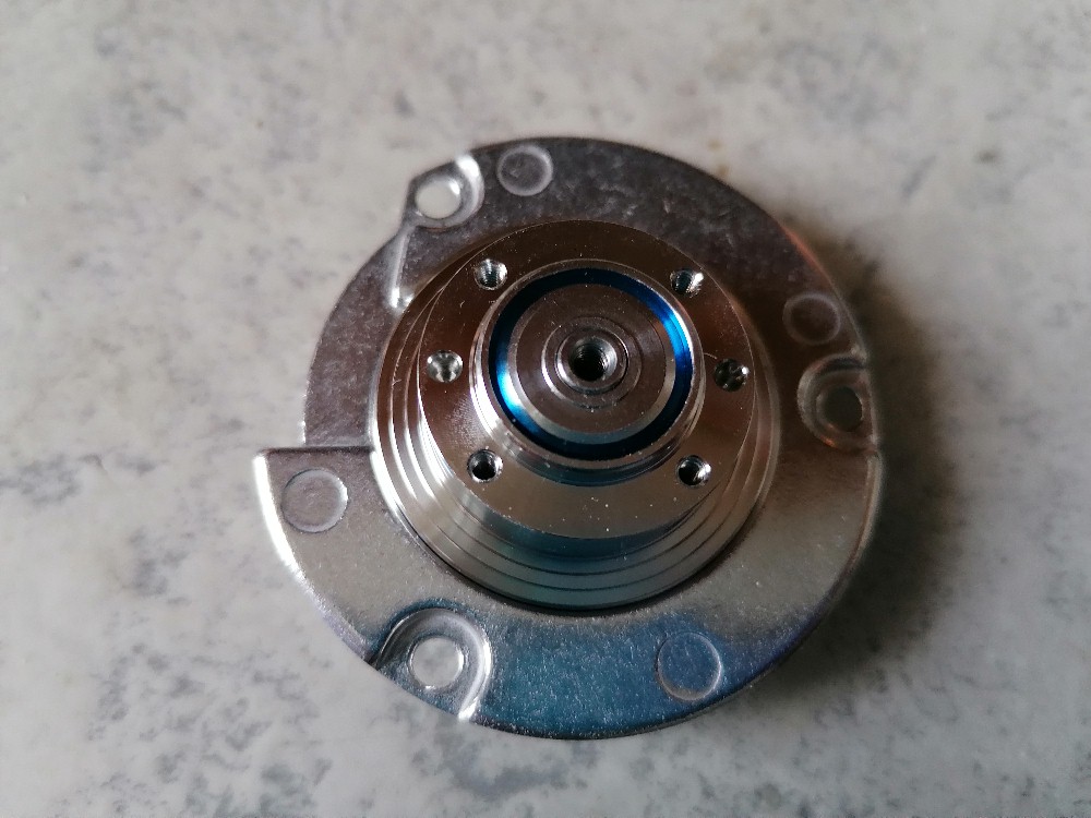 Spannung angeschlossen und der Motor startet nicht mehr, sondern ruckelt vor sich hin bzw. bleibt stehen. Also dachte ich mir zunächst, ich habe beim Löten eines der pads zerstört. Daher lötete ich nun die 4 Kabel direkt an die sehr dünnen Motordrähte an. Zuvor musste ich mit dem Lötkolben noch die Schutzschicht entfernen. Spannung wieder angeschlossen und der Motor spinnt nach wie vor. Vielleicht kann es an den nicht montierten Speicherscheiben liegen? Diese angeschraubt und siehe da, jetzt läuft der Motor wieder wie erwünscht an. Hatte schon befürchtet, alles in die Tonne werfen zu müssen.