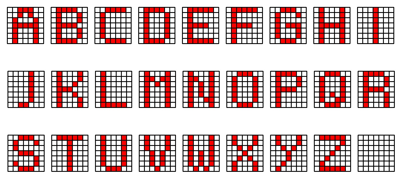 Mir kam gleich in den Sinn, dieses Projekt wieder aufleben zu lassen, dieses Mal aber mit einem Arduino. Zuerst zeichnete ich die Buchstaben unseres Alphabets: