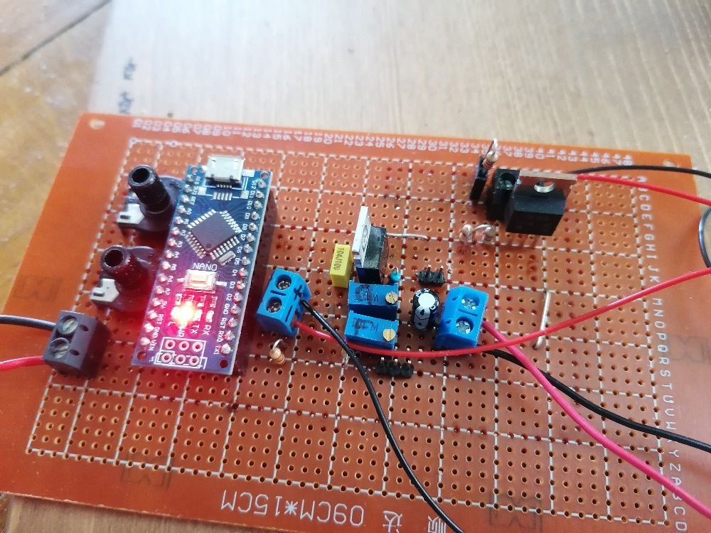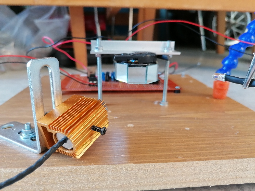 Dann ging es ans Programmieren und löten. Zuerst probierte es mit einer Arduino-Motorregelung. Dazu verwendete ich den einstellbaren Konstantstromtreiber mit LM358 und TIP120. Leider ließ drehte sich der bürstenlose Lüftermotor aber nicht von der Stelle. Danach probierte ich es mit einem Transistorverstärker, auch das war leider vergebens. Brushless-Motoren sind also sehr zickig, was deren Spannungsversorgung betrifft.