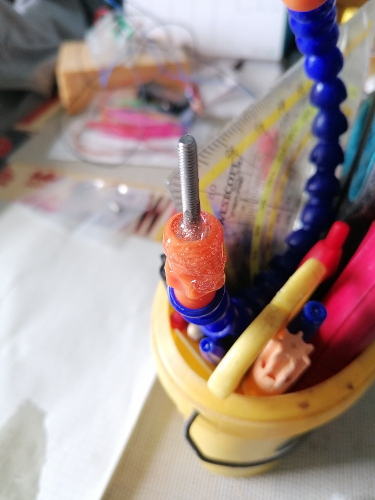 In das eine Ende des Schwanenhals klebte ich zur späteren Montage auf der Holzplatte eine M4-Schraube ein: