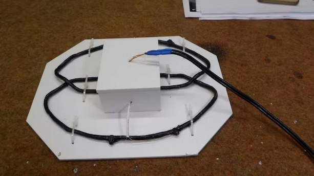 Meine beiden Spulen muss ich erst mit Kabelbindern in der passenden Form auf einer Grundplatte fixieren:
