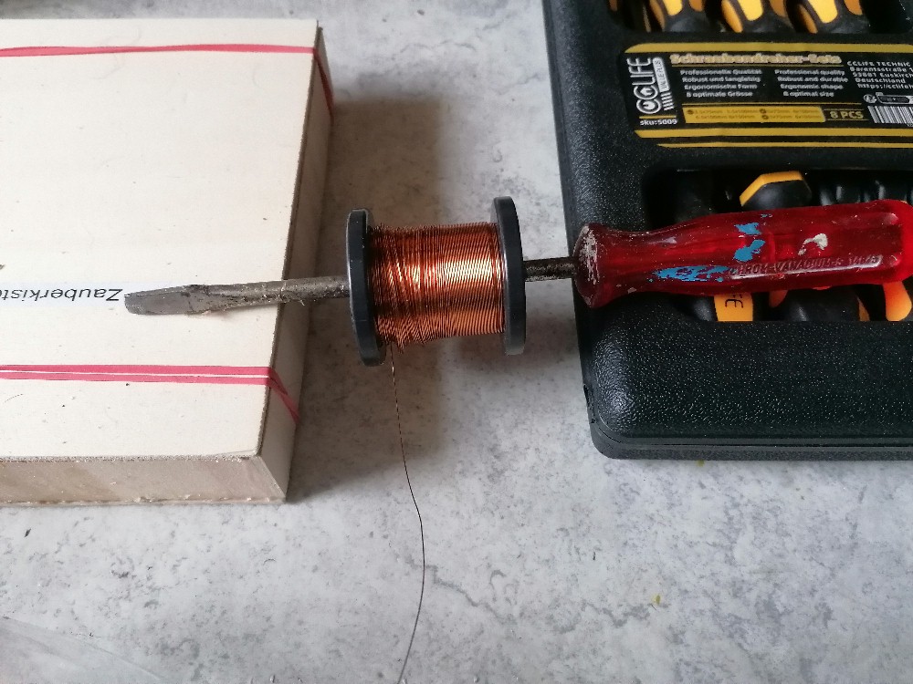 Damit sich die Spulen nicht auflösen, habe ich sie mit Tixoband reichlich umwickelt: