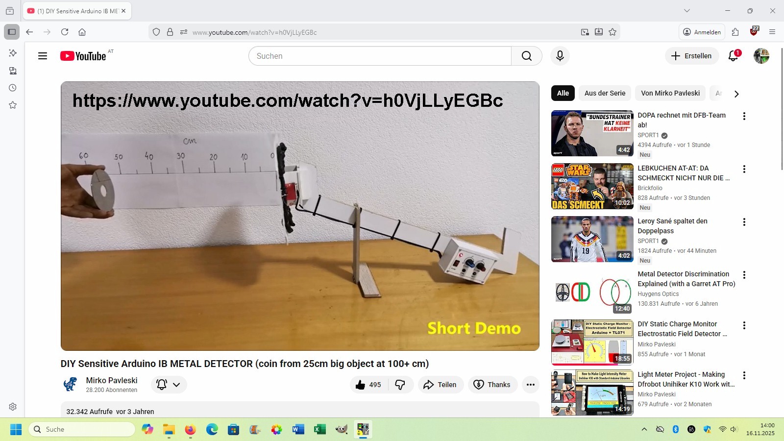 Ein Metalldetektor steht auch schon seit Ewigkeiten auf meiner Agenda. Einen sehr einfachen habe ich bereits umgesetzt: https://stoppi-homemade-physics.de/diverse-elektronische-schaltungen/.