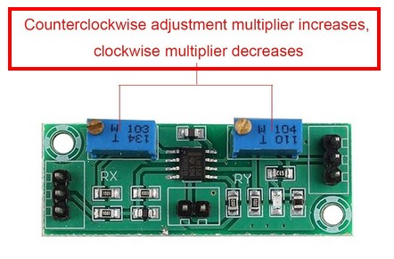 Achtung: Die Verstärkung erhöht man, indem man die beiden Potentiometer entgegen dem Uhrzeigersinn dreht!