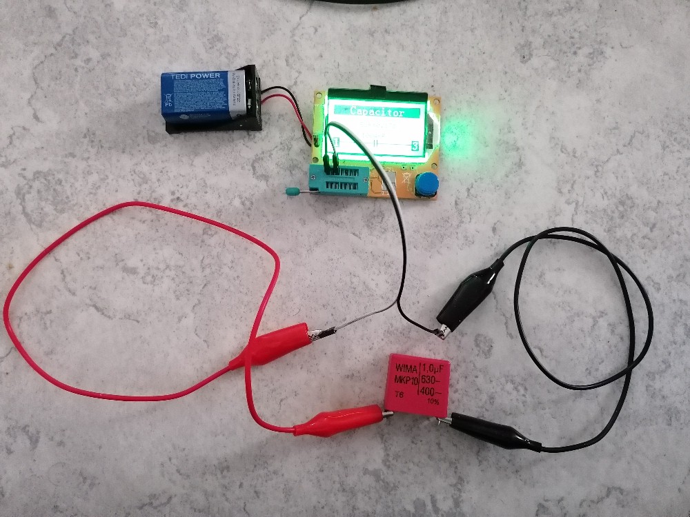Mit meinen genialen Komponententester habe ich dann die beiden Spulen und Kondensatoren vermessen:
