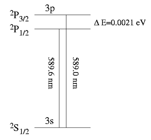 Dazu gibt es ein schönes Experiment mit einem verblüffenden Ergebnis. Man bestrahlt mit einer Natriumdampflampe eine Wand. Diese erstrahlt in einem Orange. Denn das in der Lampe angeregte Natrium sendet primär Licht bei den Wellenlämgen 589.0 nm und 589.6 nm aus. Dies ist die bekannte Natrium Doppel-D-Linie: