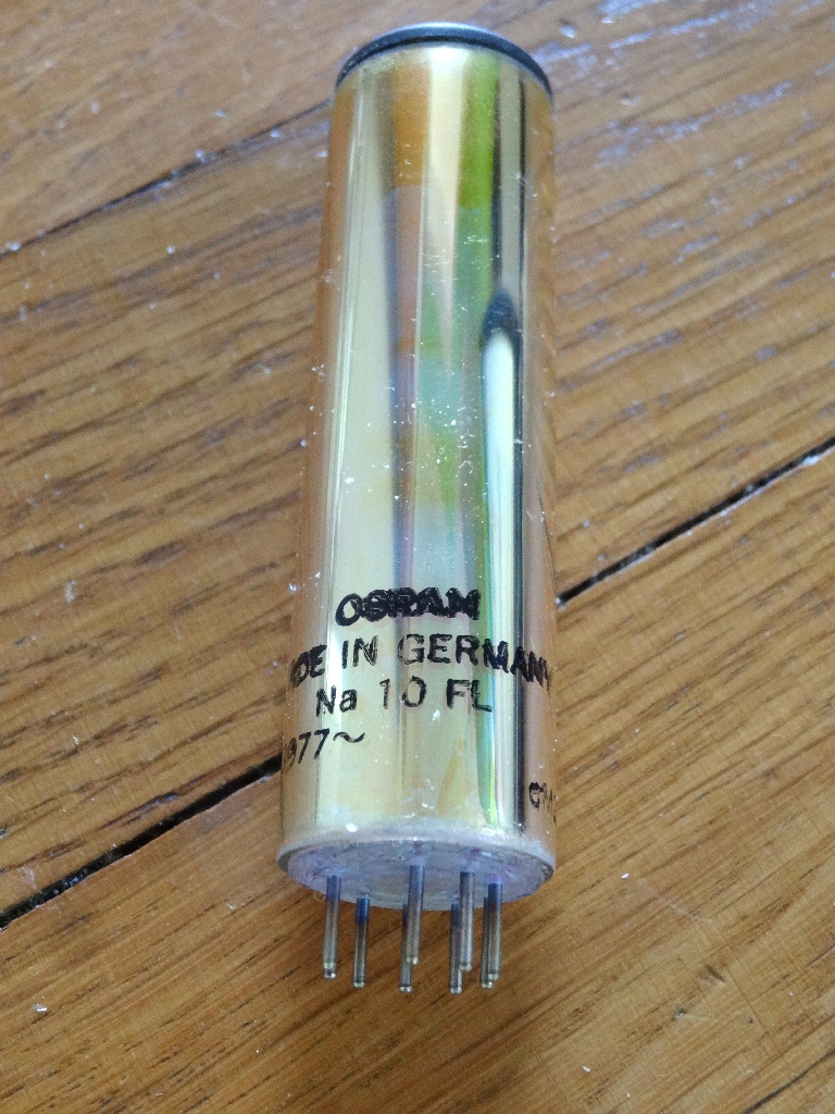 Hier sieht man schön den dunklen Schatten der Natriumflamme im Licht der Natriumlampe: