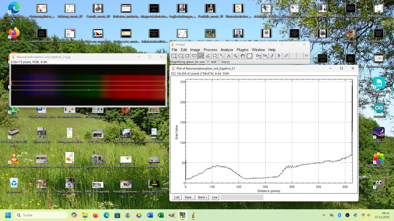 Das Absorptionsspektrum von Jod müsste also dadurch ungleich komplexer aussehen als die beiden Natrium-Linien. Dies möchte ich zeigen…