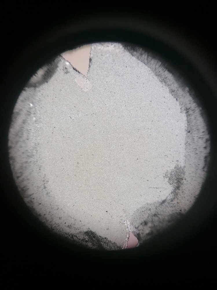 Blickt man nun durch das Okular, so sollte man die Zinksulfidschicht scharf sehen.