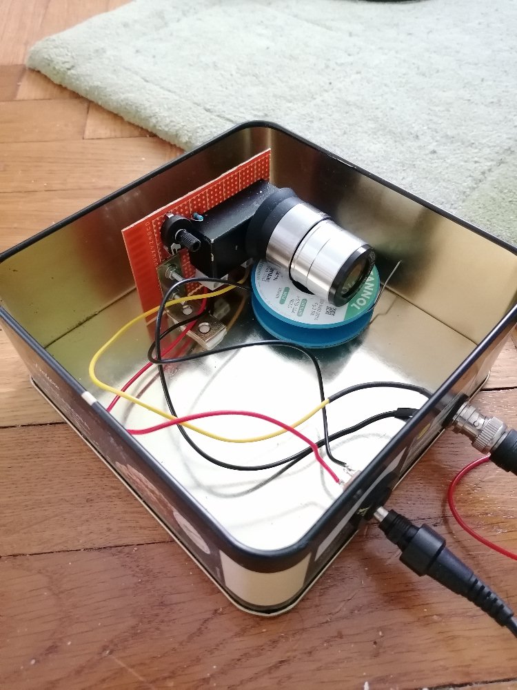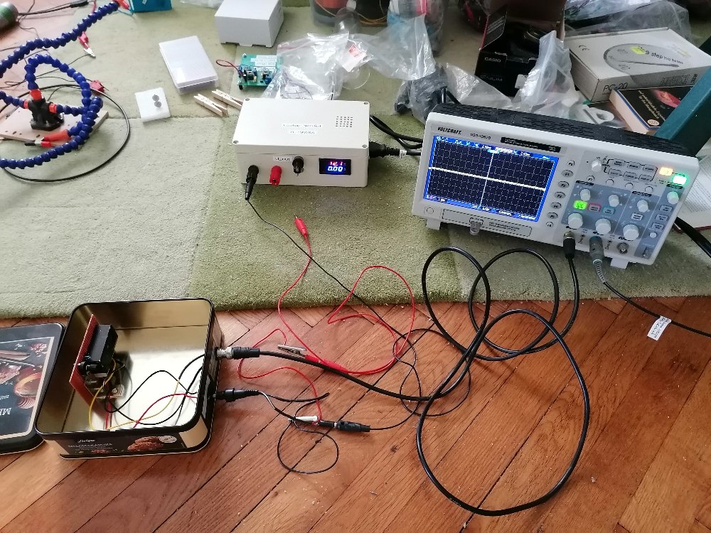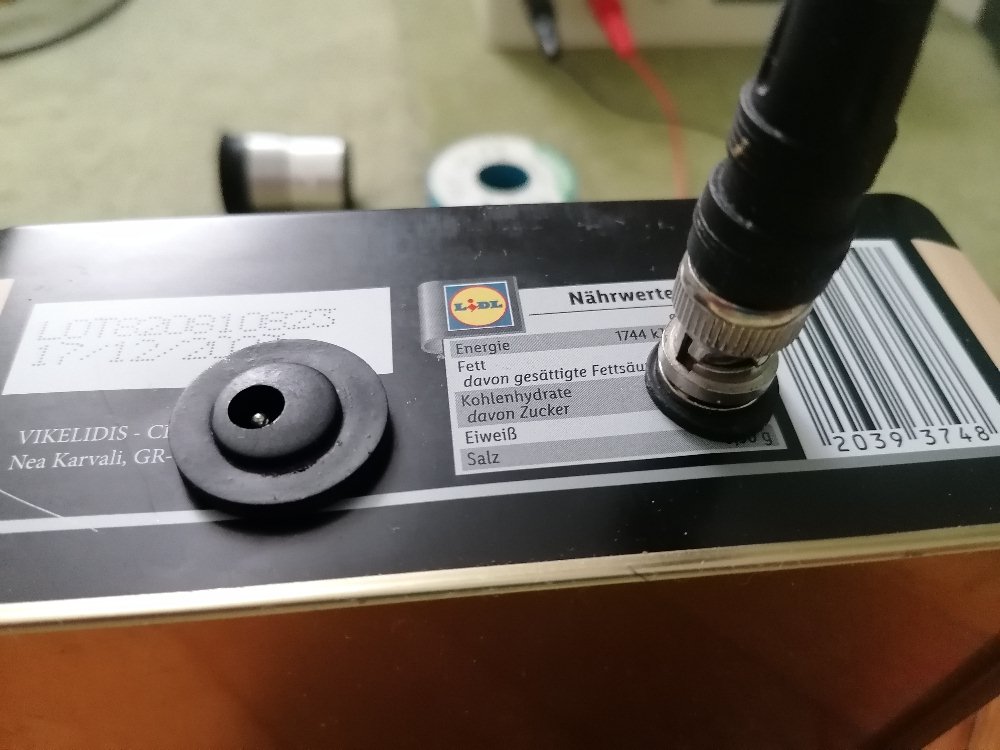 Diesen brachte ich in einer Metallbox unter und verband den Signalausgang mit meinem Digitaloszilloskop: