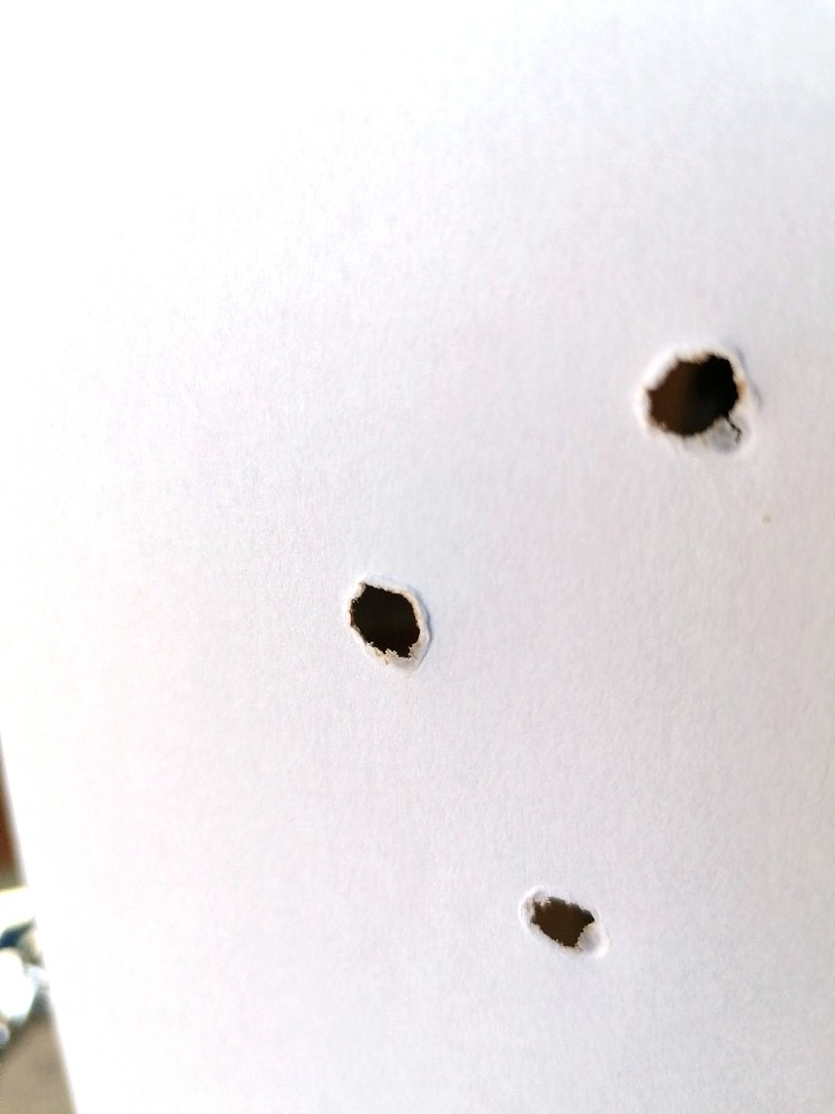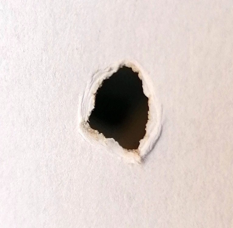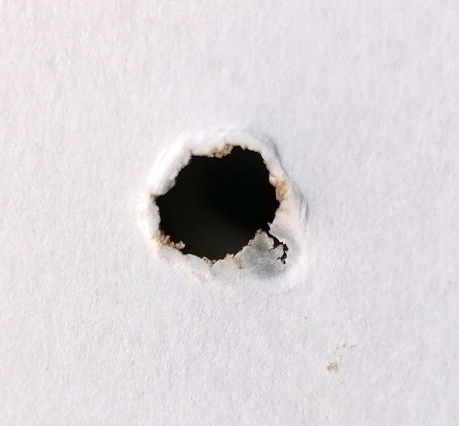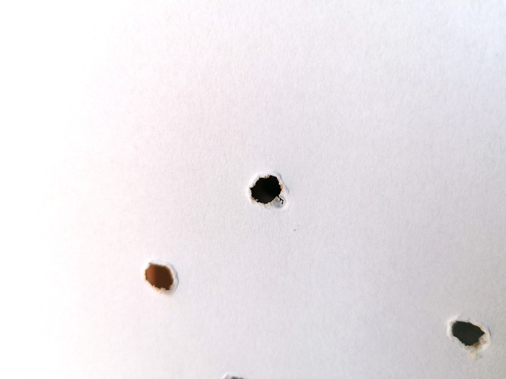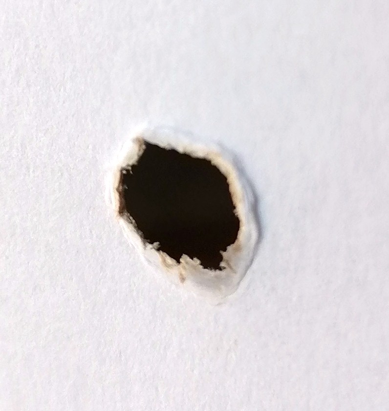 Man hört den Zusammenstoß aber man sieht im Anschluss daran auch etwas Wichtiges und zwar Löcher, welche leichte Brandspuren aufweisen. Zudem riecht es auch ein wenig nach verbrannten Papier.