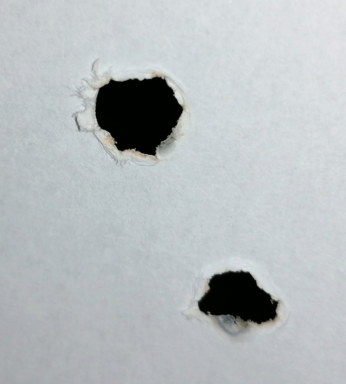 Die Löcher sind auch um einiges größer, als man erwarten würde. Diese Größe kann bestimmt auch nicht durch eine ungewollte Bewegung der beiden Kugeln in y-Richtung während des in x-Richtung erfolgten Aufpralls erklärt werden.