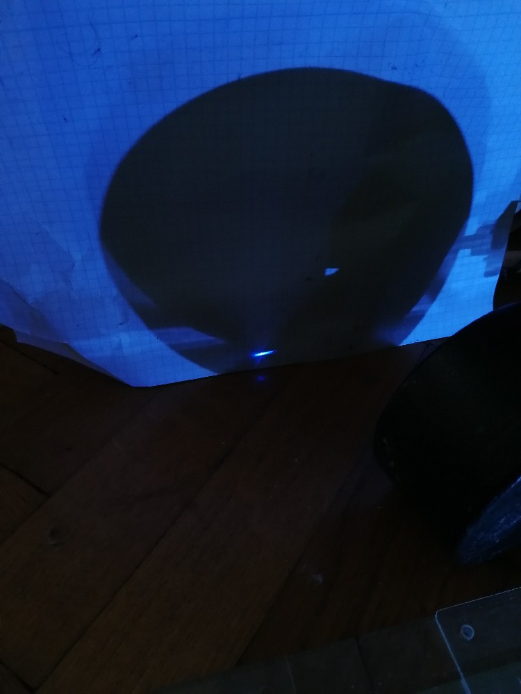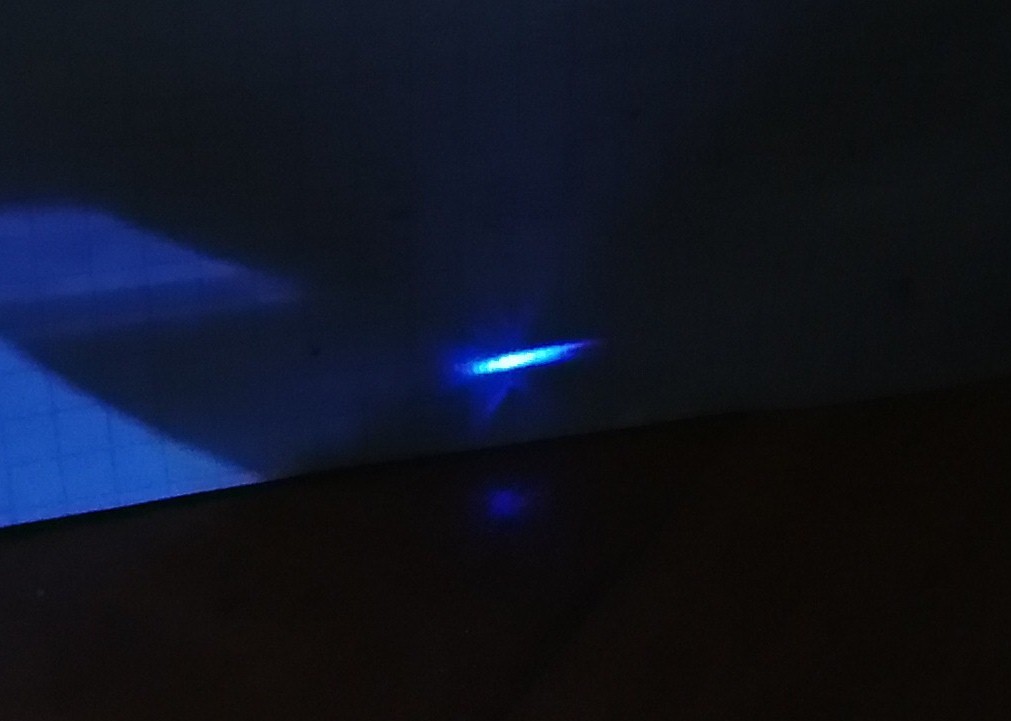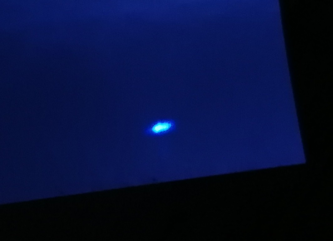 Am Blatt Papier erscheint aber trotzdem ein schöner, bläulicher Laserfleck: