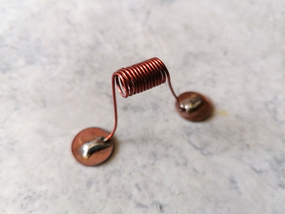 Die Luftspule, welche die beiden Kondensatoren parallel zum Laserkanal verbindet: