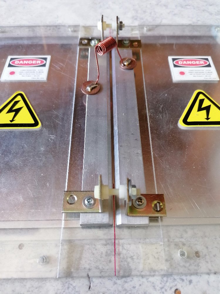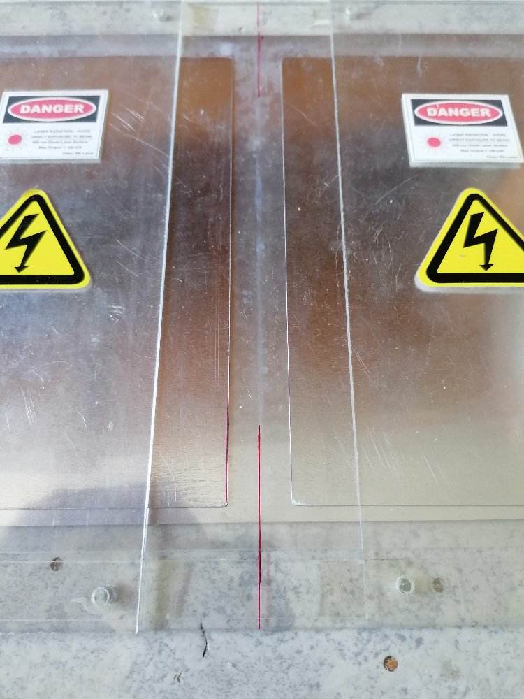 Das Herzstück des Lasers, der Laserkanal gebildet aus zwei spitz zulaufenden Aluprofilen: