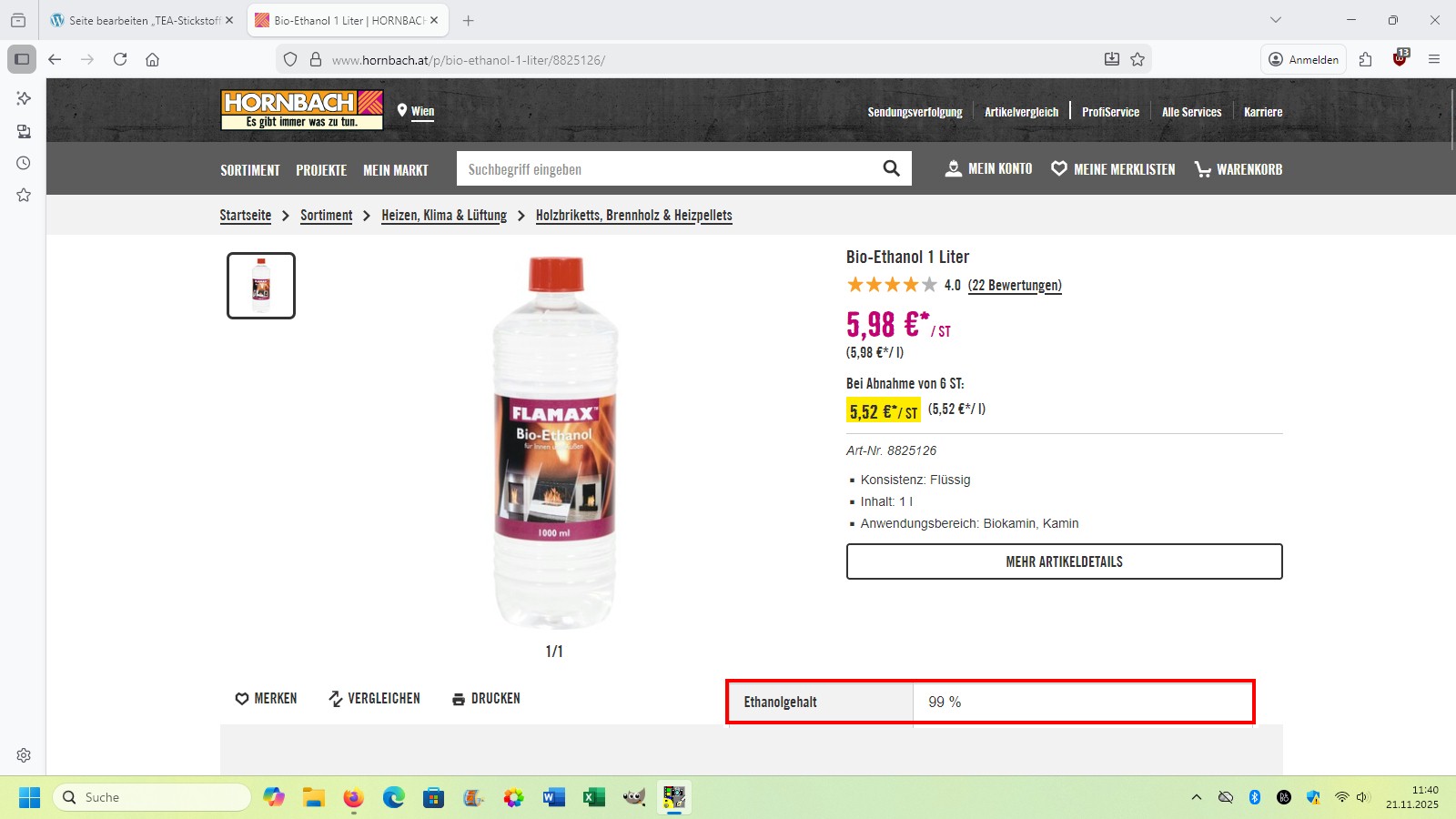 99%igen Ethanol gibt es im Baumarkt (z.B. Hornbach):