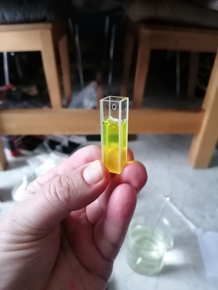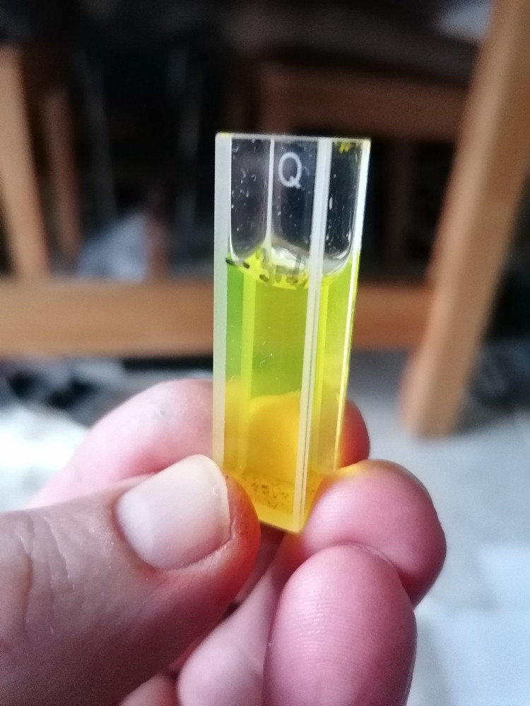In der Zwischenzeit ist das Rhodamin 6G aus der Ukraine eingetroffen. Ich kann mir nach wie vor schwer vorstellen, wie der Alltag in einem Kriegsland vonstatten geht. Möge dieser schreckliche Krieg bald zu Ende sein 🙁