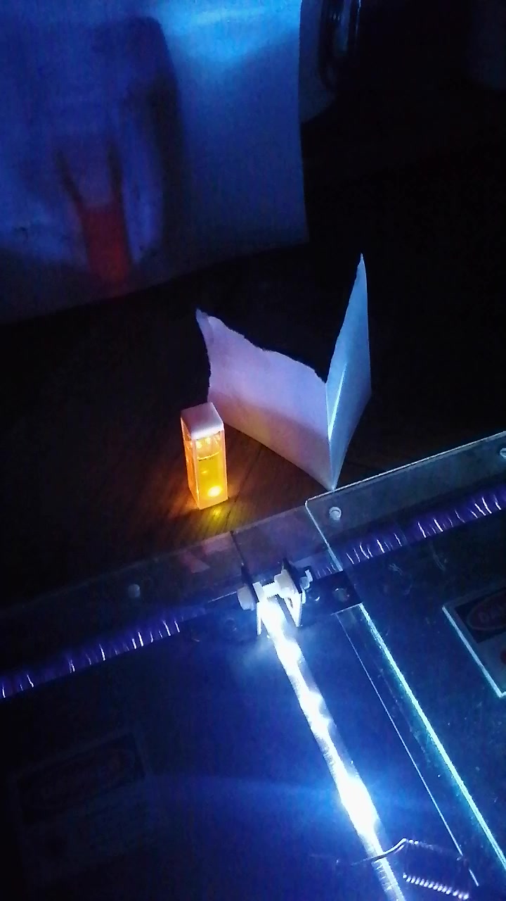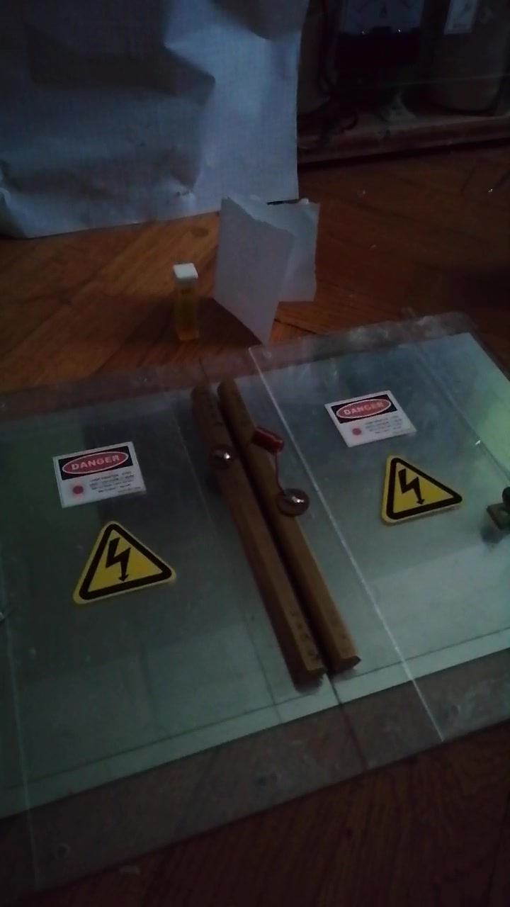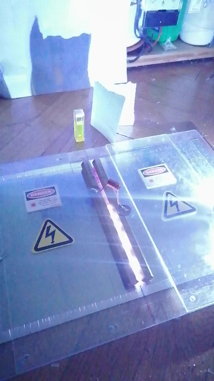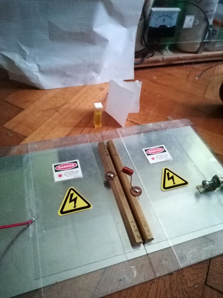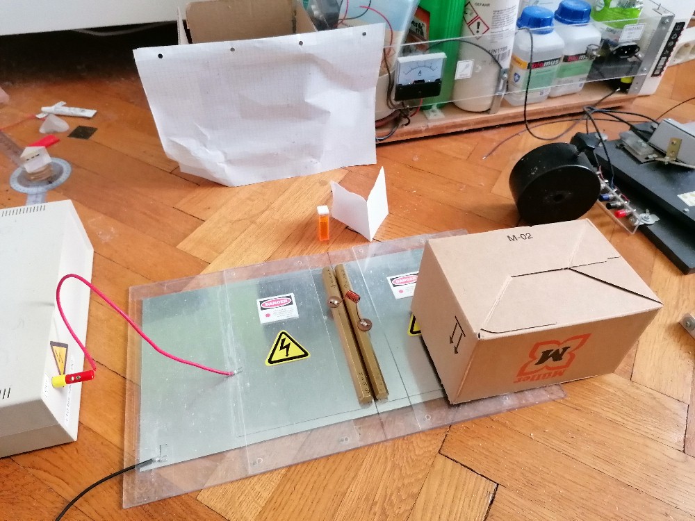 Damit das Licht der Funkenstrecke nicht stört, habe ich diese mit einem Karton abgedeckt: