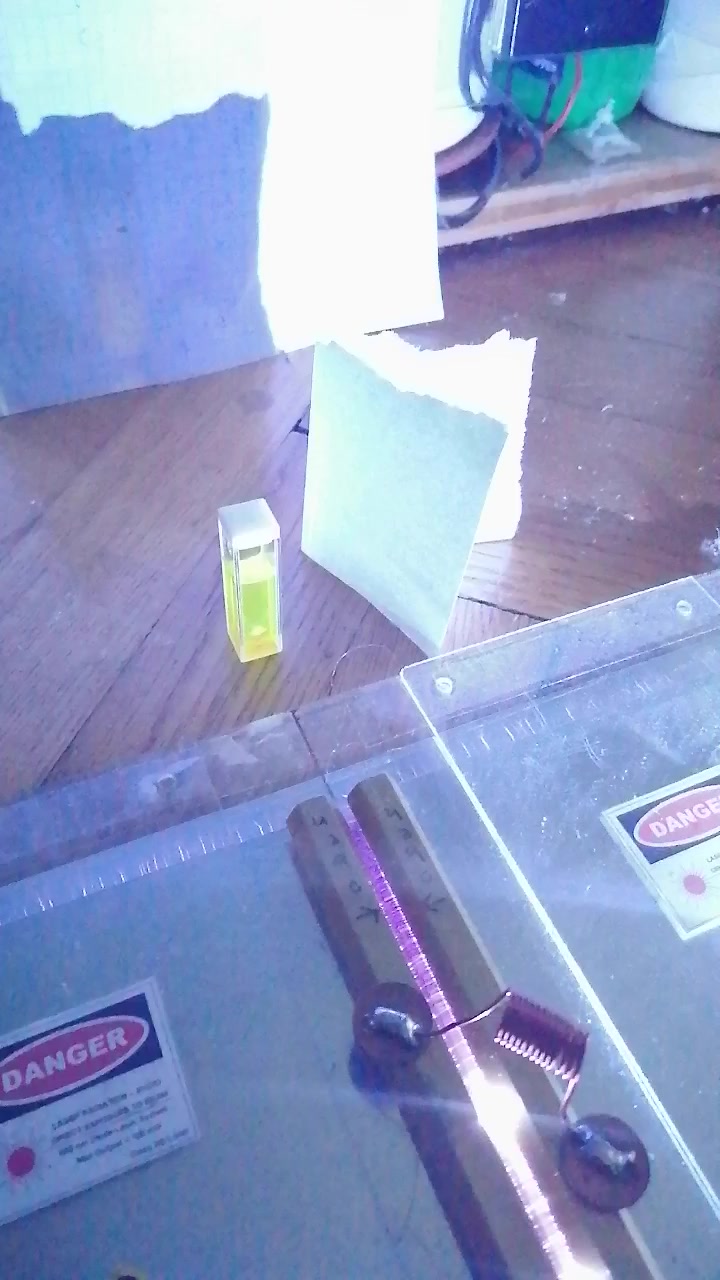 Leider konnte mit dem seitlich aufgestellten Papier keinerlei Laseraktivität des Fluorescein nachgewiesen werden: