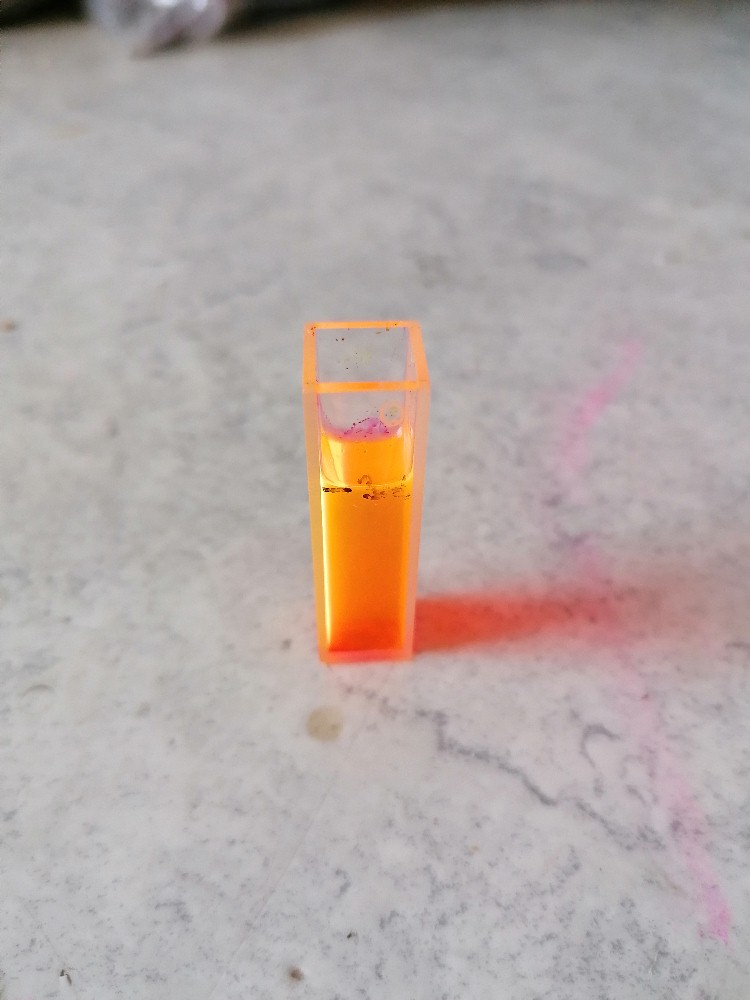 Seitlich von der Küvette war eben leider kein oranger Laserspot zu bemerken: