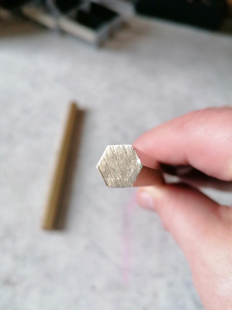 Da es fast ausschließlich an den Enden der Sechskantstäbe zu Funkenentladungen kam, musste ich die Enden mit sehr feinem Schleifpapier bearbeiten und Material abtragen bzw. die Ecken abrunden.