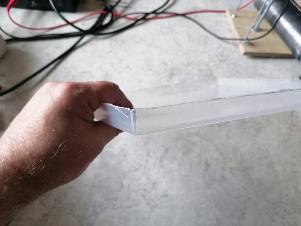 Damit die Wellenerreger bis ins Wasser reichen, musste ich die Plastikwanne auf eine Höhe von 2 cm kürzen: