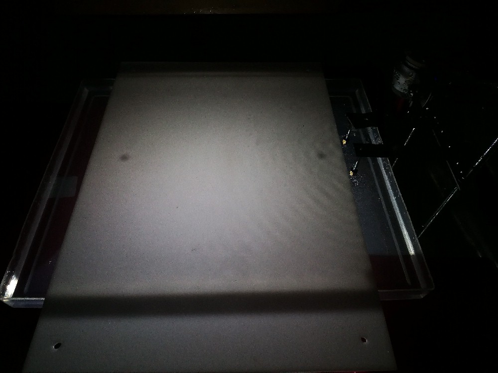 Von unten wird die Wellenwanne von meinem Arduino-Stroboskop beleuchtet: