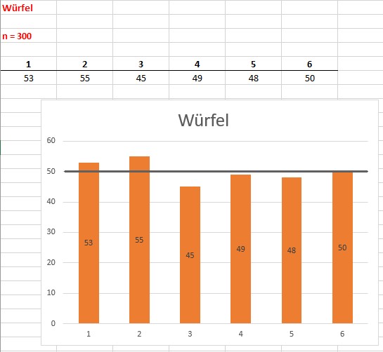 Experiment mit 300 Würfen: